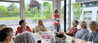Eine schöne Muttertagsfeier bereitete das AWO-Team den Besucherinnen im vollbesetzten Seniorencafé in der Wohnanlage San-Pietro-Straße. Nach Kaffee und Torte wurde noch mit Sekt und Orangensaft auf einen Geburtstag angestoßen. Rote Glückskäfer, bunte Schmetterlings-Servietten und Blumen schmückten die Tische. Zum Nachmittagsprogramm gehörten Muttertags- und Mai-Lieder sowie ausgesuchte Gedichte und Geschichten. Zum Abschluss verblüffte Ria Opper die Gäste mit der Vorführung eines Zauber-Kunststücks. Der AWO-Vorsitzende Gerhard Körber dankte dem AWO-Helferteam mit Blumen für den ehrenamtlichen wöchentlichen Einsatz.