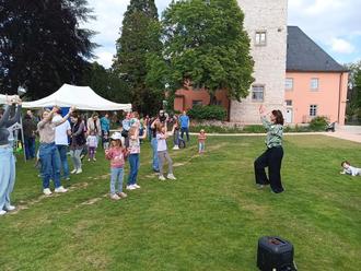Bei strahlendem Sonnenschein konnten Kinder, Jugendliche und ihre Eltern den Garten gemeinsam entdecken und spielerisch erleben. Das Fest bot vielfältige Aktivitäten, bei denen Spaß und Gemeinschaft im Mittelpunkt standen. Besonders Bürgermeisterin Eveline Breyer sorgte für einen Höhepunkt des Nachmittags: Sie lud alle Anwesenden zu einem Mitmachtanz ein. Bewegung, Freude und Zusammenhalt standen hier im Vordergrund, und viele Kinder sowie Eltern machten begeistert mit.
