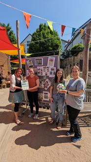 Die Kita Saalmühle nutzte das diesjährige Kitafest um bei strahlendem Sonnenschein die Auszeichnung zur Fairen Kita gemeinsam mit den Eltern und dem Team zu feiern. Die Kinder haben Kuchen aus fairen Zutaten als Kostproben für die Besucher gebacken. Mira (5 Jahre) erklärte den Besuchern ein wichtiges Kriterium für den fairen Handel: "Wenn Kinder Schokolade mit dem Siegel kaufen bedeutet dies, dass keine Kinder arbeiten mussten". Antonia Weßling, Koordinatorin für kommunale Entwicklungspolitik und Abteilungsleiterin Silvana Luckas bedankten sich im Namen der Stadt Ingelheim für die Auszeichnung.