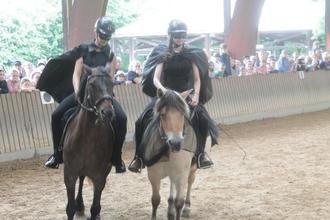 Amalia und Pia zeigten auf den Ponys Minou und Arti eine rasante Show als Schattenreiter.