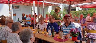 Im Rahmen der 41. Ingelheimer Seniorentage 2025 organisierten die AWO Ingelheim und die Stadtteilkümmerer ein gemeinsames Grillfest im Innenhof der Wohnanlage San-Pietro-Str. 3. Rund 50 fröhliche Gäste konnten - von engagierten Aktiven mit Speisen und Getränken bestens versorgt - bei schönstem Wetter feiern. Im Innenhof, wunderbar mit bunten Blumen und Stauden von aktiven Anwohnerinnen bepflanzt, fühlten sich die Besucher sehr wohl unter den Pavillons. Die Vorsitzende des Arbeitskreises Altenhilfe, Christine Jacobi-Becker, und Gerhard Körber von der AWO führten viele Gespräche, freuten sich über das gelungene Fest und dankten herzlich den vier Stadtteilkümmerern und dem ehrenamtlichen AWO-Helferkreis für den Einsatz.