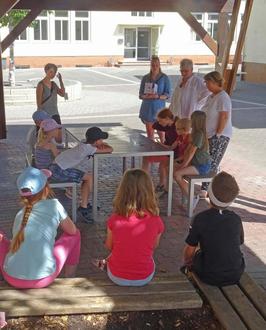 Nachdem entschieden war, welche Organisation das Geld erhalten sollte, wurde Carmen Maurer vom Verein Armut und Gesundheit in Deutschland e.V eingeladen. Sie berichtete den Kindern von der interessanten Arbeit des Vereins. Die Kinder überreichten die Spende aus dem Gewinn der Kunstauktion. Dieses Geld kommt einem Kinderkrankenhaus in der Ukraine zugute.