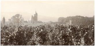 »Weinbergszeilen des ehemaligen Weinguts Kirchenstück der Familie Niedecken im Gehauweg oberhalb des Sportplatzes«, aufgenommen anlässlich der Weinlese am 6. Okt. 1932, © Fotoarchiv Peter Weiland