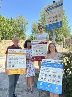 „Das Erste von insgesamt 103 zu montierenden Schildern ist geschafft!“, verkündet Benjamin Giehler vom Umwelt- und Grünflächenamt. Grund der Zusammenkunft der Projektverantwortlichen ist der Startschuss für eine neue Beschilderung der Ingelheimer Spielplätze und Freizeitanlagen.