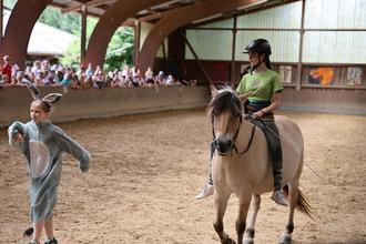 Das Musical HAPPY HORSES mit Reitern, Pferden & den Kindern der Kinderreitstunde lief perfekt. Sabine Fischmann, die das Musical mit Ali Neander für Pro Equis geschrieben hat, sang alle Songs live & erzählte die Geschichte des Pferdes Eduard, der eine neue Bleibe mit seiner Reiterin Lotte suchen musste, weil sein Besitzer ihn nicht mehr wollte. Begleitet wurden die beiden vom durchgeknallten Esel Rudi. Bei ihrer Suche begegneten ihnen verschiedenste Schicksale von Pferden & Eseln. Schicksale, die auch die Pro Equis Notfallpferde hinter sich haben.