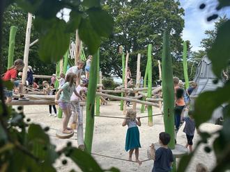 Ein weiteres Highlight der Anlage sind die 60 Holzpfosten, die von Kindern der Horte und Kitas im Dschungel-Design bemalt wurden und den Dschungel-Pfad begrenzen. Zudem können Besucher*innen die neue Calisthenicsanlage und diverse Sportgeräte für Senioren nutzen und dabei ihre Fitness unter Anleitung testen. „Die Sportgeräte standen vor Kurzem noch auf dem Gelände des TG Sport-Zentrums. Dort wurden sie allerdings nicht gut angenommen und sind kurzerhand hierher verlegt worden“, erklärte Christine Jacobi-Becker vom Seniorenbüro Ingelheim.