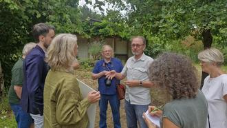 NSGI-Vorsitzender Wolfgang Tschuck erläutert den Vertretern von Boehringer Ingelheim und der Lokalpresse die Ziele und Aktivitäten der Naturschutzgruppe