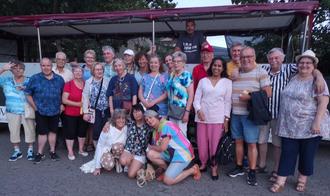 Gott sei Dank war am Mittwoch 12.07. das Wetter für uns perfekt gemacht. Nicht so schwül und heiß, sondern genau richtig für eine Planwagenfahrt durch die Gemarkung. Alle waren pünktlich, so dass es um 18 Uhr mit unserem Gregor als Fahrer los ging. Angekündigt war vorher, dass wir über Finthen kommen. Aber es gab dann doch sehr verwunderte Gesichter, als der Wagen über die Heidenfahrtstraße Richtung Rhein fuhr. Umweg? Was war los? Wir konnten Gregor ja nicht fragen, da er den Traktor fuhr. So haben wir abgewartet bis zur ersten Haltestelle, die über Heidenfahrt am Damm Richtung Ingelheim am Polder stattfand. Interessante Geschichten, z.B. vom sprechenden Baum, haben uns komplett abgelenkt.