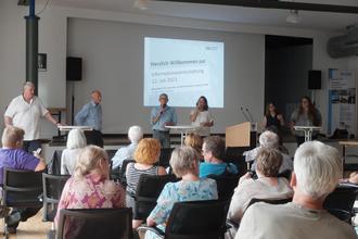 Am Mittwoch, 12.07.2023, kamen mehr als 50 interessierte Bürger*innen in den Interims-Ratssaal in Ingelheim, um sich zum Masterplan CO2-neutrales und klimaresilientes Ingelheim 2040 zu informieren. In einer Podiumsdiskussion standen neben der Beigeordneten und Klimaschutzdezernentin Dr. Christiane Döll und dem Leiter des Umweltamts Roland Beek die Geschäftsführer der Ingelheimer Wohnungsbaugesellschaft GmbH (WBI) Franz Göbel und der Rheinhessischen Energie- und Wasserversorgungs GmbH Maik Thum für Fragen aus dem Publikum bereit. Ergänzt wurde die Runde durch Sarah Bernhardt-Vautz, Regionalreferentin für Rheinhessen-Nahe der Energieagentur Rheinland-Pfalz. Zum Auftakt der gelungenen Veranstaltung stand das Thema Klimaschutz und CO2-Neutralität im Vordergrund. Weitere Schwerpunktthemen sind in Vorbereitung.