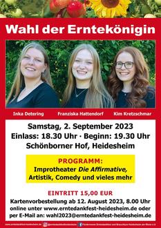 Es ist mal wieder so weit und es wird gewählt: Die Heidesheimer Erntekönigin 2023/24. Und zwar am Samstag, den 02. September.