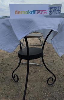 Die Initiative "Zuhören und miteinander reden am demokraTISCH" stellt darauf ab, mit einfachsten Mitteln im öffentlichen Raum erkennbare Orte der "herrschaftsfreien Kommunikation" zu schaffen.