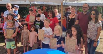 Über Platz 2, eine Planwagenfahrt gestiftet vom Weingut Eppert, freuten sich Fiona, Niklas und Frank. Hier punktete Fiona mit einer rekordverdächtigen Leistung beim Hula-Hoop. Es gelang ihr, den Reifen 44 Minuten und 20 Sekunden um die Hüften kreisen zu lassen.