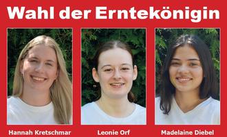 Am 07. September wird in Heidesheim gewählt - und zwar die 68. Erntekönigin. Zur Wahl um das Amt stehen in diesem Jahr die drei jungen Frauen Hannah Kretschmar, Leonie Orf und Madelaine Diebel. Gemeinsam werden sie Heidesheim für ein Jahr lang repräsentieren und auf über 50 Auftritten im In- und Ausland vertreten.
