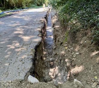 Graben für die neue Wasserleitung in der Steig