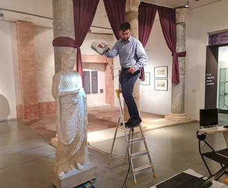 Letzte Woche drehte sich im Museum bei der Kaiserpfalz alles um die römischen Statuen, deren Originale erst seit Oktober des letzten Jahres wieder in Ingelheim sind: Mit einem hochauflösenden 3D-Scan wurden die Oberflächen der drei Figuren millimetergenau erfasst und dokumentiert. Hintergrund der technisch aufwändigen Vermessung ist das deutschlandweite Verbundprojekt „museum4punkt0 - Digitale Strategien für das Museum der Zukunft“, in dessen Rahmen das Museum eine App zur Wissensvermittlung entwickelt.