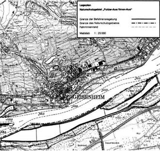 Zur Sicherung der Stillgewässer im Naturschutzgebiet „Fulder Aue – Ilmen Aue“ als Brut-, Rast- und Überwinterungsraum für Wasservögel durch Reduzierung von Störungen, zur Verhinderung erheblicher Beeinträchtigungen eines Natura 2000-Gebietes in seinen für die Erhaltungsziele bzw. den Schutzzweck maßgeblichen Bestandteilen und zum Schutz der frei lebenden, besonders und streng geschützten Brut-, Zug- und Rastvogelarten Singschwan, Graugans, Tafel-, Reiher-, Berg-, Trauerente, Zwerg-, Gänse-, Mittelsäger, Stern-, Prachttaucher, Silber-, Graureiher, Schwarzstorch, Fischadler, Wespenbussard, Schwarzmilan, Baumfalke, Kranich, Austernfischer, Flussregenpfeifer, Flussufer-, Waldwasser-, Bruchwasserläufer, Lach-, Steppenmöwe, Trauer-, Flussseeschwalbe, Eisvogel, Grau-, Schwarz-, Mittel-, Kleinspecht, Neuntöter sowie weiterer Brut- und Rastvögel ist das Befahren der Wasserfläche im Naturschutzgebiet „Fulder Aue – Ilmen Aue“ zwischen den Inseln Fulder Aue und Ilmen Aue, den anschließenden Parallelwerken und dem linken Rheinufer von Rhein-km 520,50 bis Rhein-km 525,30 mit Wasserfahrzeugen in der Zeit vom 1. April bis zum 14. Oktober untersagt. Das Naturschutzgebiet ist in der hier veröffentlichten Karte entsprechend gekennzeichnet.