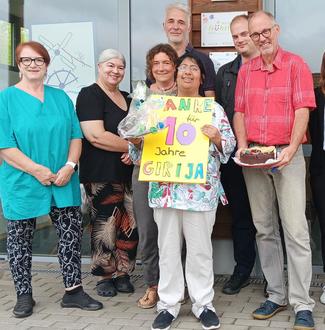 Vor zehn Jahren wurde in der Kindertagesstätte Saalmühle ein wichtiger Schritt in Richtung gelebter Inklusion getan: Mit Unterstützung der damaligen WFB Fertigung & Service GmbH entstand ein Außenarbeitsplatz für eine Mitarbeiterin mit Beeinträchtigung. Heute feiert die Einrichtung gemeinsam mit Vertreter*innen von in.arbeit die erfolgreiche Zusammenarbeit sowie das zehnjährige Jubiläum von Girija Heitmüller.