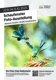 Der Foto-Club Heidesheim lädt auch dieses Jahr wieder zur inzwischen traditionellen Schaufenster-Foto-Ausstellung ein: vom 22.09.-09.10.2023.