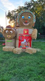 Vielen Dank an alle, die diese schöne Begrüßung jedes Jahr möglich machen: an die Spender der Strohballen und die fleißigen Helfer zum Aufstellen, Schmücken und Befestigen.