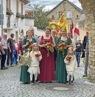 Zum 79. Mal findet mittlerweile das überregional bekannte Ingelheimer Rotweinfest statt. Und ganz traditionell wurde das Fest mit der Krönungszeremonie auf dem Balkon des alten Rathauses in Ober-Ingelheim eröffnet. Mit musikalischer Umrahmung der Freiwilligen Feuerwehr Götzenhain-Offenthal schritt der neue Hofstaat die Rinderbachstraße Richtung Ober-Ingelheimer Marktplatz entlang. Gefolgt von zahlreichen Jahrgängen und Ehrengästen wurden Laura I. (Laura Schlösser) mit ihren Prinzessinnen Rebekka Burk und Elisa Roos von vielen Zuschauer*innen empfangen.