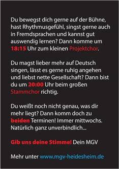 Beim Festumzug haben wir auch kleine Flyer verteilt mit einem Aufruf zum Mitmachen. Wir würden uns sehr freuen, wenn weitere fröhliche Stimmen den Weg zu unseren Chören finden. Traut euch!