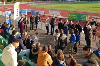 Es war früh und frisch am Morgen des 12.10., als Clubpräsidentin Eveline Breyer 160 Schülerinnen und Schüler und zahlreiche Lehrkräfte im Ingelheimer Stadion Blumengarten zum „Wandern für Wasser“ begrüßte.