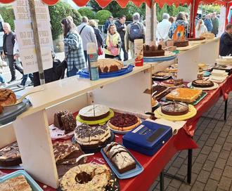 Die gut gefüllte Kuchentheke des Carneval-Verein Frei-Weinheim am Rotweinfestsonntag in der Bahnhofstraße war bereits um 16 Uhr ausverkauft...