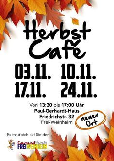 Unser beliebtes Herbstcafé öffnet das erste Mal am 03.11.2024 ab 13.30 Uhr im Paul-Gerhart-Haus, Friedrichstraße 32 in Frei-Weiheim seine Türen.