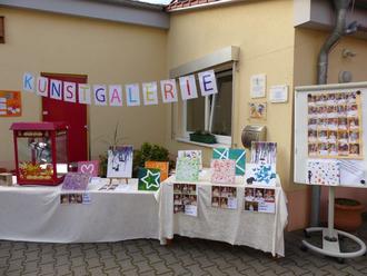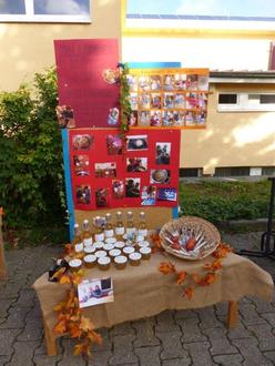 Ein Highlight des Tages war sicher die Kunstausstellung, deren Werke später im Rahmen einer „Auktion“ den Besitzer gewechselt haben. Unter Verwendung verschiedener Techniken entstanden wunderschöne Kunstwerke, bei denen auch die jüngsten Kinder mitwirkten. Einen weiteren Höhepunkt stellte der „offene Tanzworkshop“ für Erwachsene und Kinder dar. Unter der engagierten Anleitung von Ela Pooth hatten sowohl die Kinder als auch die Eltern sichtlichen Spaß an Tanz und Bewegung. Die Freude über das endlich wieder stattfindende Fest zog sich durch den ganzen Nachmittag und wurde nicht einmal von einigen kurzen Regenschauern getrübt. Traditionell wurden beim Herbstfest auch wieder die Kostüme und Requisiten für die Teilnahme am Erntedankumzug in Heidesheim hergestellt.
