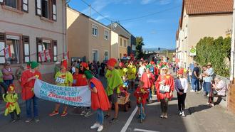 Wie jedes Jahr hat sich die Kita Zwergenhaus auch 2023 wieder am Erntedankfestumzug in Heidesheim beteiligt. Sowohl für die Kinder als auch für die Eltern und das Personal der Kita ist der Umzug eine willkommene Abwechslung zum Alltag. Unter dem Motto "Der Bagger rollt, hier ist was los - das Zwergenhaus wird endlich groß!" stand die Teilnahme in diesem Jahr.