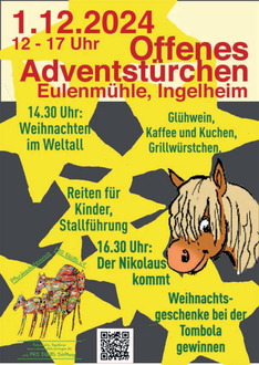 Die Eulenmühle veranstaltet auch in diesem Jahr wieder ein Offenes Adventstürchen mit Attraktionen für Kinder – am 01.12.2024, von 12 – 17 Uhr.