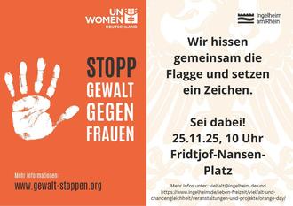 Die Stadt Ingelheim beteiligt sich bereits zum sechsten Mal am Orange Day, dem internationalen Aktionstag gegen Gewalt an Frauen am 25. November. Ziel ist es, auf Gewalt gegen Frauen und Mädchen aufmerksam zu machen, Betroffene zu stärken und Unterstützungsangebote sichtbar zu machen.