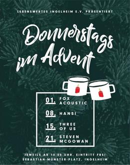 Wie zuletzt 2019 vor der Pandemie veranstaltet der Stadtmarketingverein Lebenswertes Ingelheim wieder akustische Livemusik-Abende unter dem Motto „Donnerstags im Advent“ am 1., 8., 15. und 22. Dezember auf dem Sebastian-Münster-Platz.