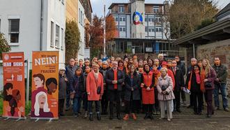 So fanden sich am Vormittag des 25. Novembers zahlreiche Mitarbeiterinnen und Mitarbeiter vor dem Rathaus ein, um gemeinsam mit der Verwaltungsspitze, der Gleichstellungsbeauftragen der Stadt Regina Barroso da Silva und Vertreterinnen der Vereine Soroptomist-Club Ingelheim und Zonta-Club Rheingau-Rheinhessen die Flagge „Wir sagen Nein! Zu Gewalt gegen Frauen“ zu hissen. „Dieser Tag ist leider immer noch notwendig. Das Thema ist keines, worüber wir uns freuen, aber gerade darum umso wichtiger“, eröffnete Oberbürgermeister Ralf Claus zu Beginn. Die Zahlen der weiblichen Gewalt-Opfer seien nach wie vor alarmierend und dürfen nicht verschwiegen werden, so Claus. Auch Regina Barroso da Silva dankte des Anwesenden für die Teilnahme an der Aktion: „Alleine kann man nichts erreichen, es braucht die Aufmerksamkeit der Masse und das möchten wir an diesem Tag erreichen.“ Im Anschluss hisste der Oberbürgermeister die orangene Flagge vor dem Rathaus und lud dazu ein, sich auch die zahlreichen weiteren Aktionen anlässlich des Orange Days innerhalb der Stadt anzusehen.