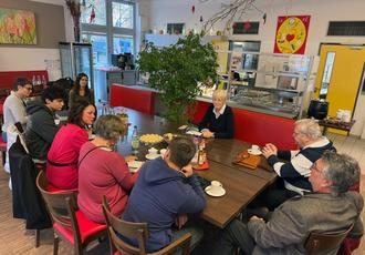 Eveline Breyer (3.v.l. an linker Tischseite) begrüßt die Teilnehmenden der „Nachtschicht“ im MGH