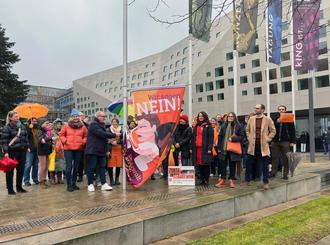 Der mittlerweile weltweit verbreitete Orange Day am 25. November wurde ins Leben gerufen, um ein Zeichen gegen Gewalt an Mädchen und Frauen zu setzen. Auch in diesem Jahr fanden sich zahlreiche Unterstützer*innen ein, um beim symbolischen Akt des Fahne-Hissens dabei zu sein, der erstmals auf dem Fridtjof-Nansen-Platz zwischen dem Weiterbildungszentrum und der Kultur- und Veranstaltungshalle kING stattfand.