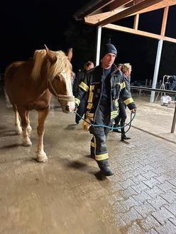 Am 22. Oktober absolvierte die Freiwillige Feuerwehr im Ingelheimer Reiterverein Trainingseinheiten am Pferd, um für den Notfall vorbereitet zu sein. Ein Team des IRV stand bereit, um einen reibungslosen Ablauf mit den Pferden in kleinen Gruppen zu gewähren. Schulpferd „Pauline“ (Foto) zeigte sich dabei sehr routiniert. Auch die anderen teilnehmenden Vierbeiner Mattis, Artos, Quoper und Enojado freuten sich über den außergewöhnlichen Besuch. Die Feuerwehrmannschaft übte zum Beispiel, wie man schnell ein Halfter anlegen kann um ein Pferd zu führen und anhalten zu können. Außerdem begutachtete die Mannschaft sehr gründlich die Stallungen und das weiträumige Gelände, die Ein- und Ausgänge und die Anschlüsse für Wasser und Strom. Der technische Leiter des IRV, Werner Reiss, war vor Ort und beantwortete alle Fragen. Dies alles dient der Sicherheit für die Pferde, deren Besitzer und Reiter auch des Schulbetriebs. Der IRV bedankt sich für diesen engagierten Einsatz der Freiwilligen Feuerwehr Ingelheim und freut sich auf weitere Zusammenarbeit.