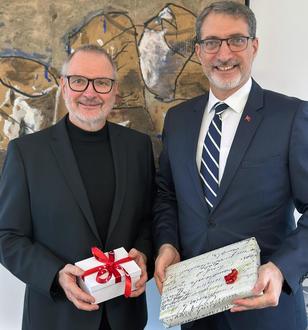 OB Claus begrüßte Inam, der sich bei seiner Vorstellung begeistert von Ingelheim zeigte und die regen Kontakte der hiesigen türkischen Community zu seinem Konsulat hervorhob, im Interimsrathaus der Stadtverwaltung. Inam hat sich für die kommende Zeit Einiges vorgenommen: 2025 möchte das Generalkonsulat sein 50-jähriges Bestehen gebührend nachfeiern, weil sich im Jubiläumsjahr 2024 keine Gelegenheit dazu ergeben hatte. Eine Hauptaufgabe sieht der Generalkonsul darin, sich Bedürftigen wie Waisenkindern und Senioren zuzuwenden und ihnen Unterstützung anzubieten. Die Kontaktpflege in seinem gesamten Wirkungsgebiet steht ohnehin stets auf der Tagesordnung Inams, der sich als Brückenbauer zwischen der Türkei und Deutschland versteht und bei all seinen Begegnungen einen Teil zur Integration beitragen möchte. Der Generalkonsul freute sich über die Bereitschaft des Oberbürgermeisters, möglicherweise einmal eine Kooperation einzugehen, sollte sich die Gelegenheit dazu bieten.