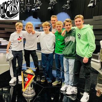 Ein Tag bevor die Deutsche Hockeynationalmannschaft die Weltmeisterschaft in Indien gewann, wurde unser Team der Jungen U14 (unter 14 jährig) Oberligameister in Rheinland-Pfalz/Saar, also bestes Team der beiden Bundesländer Rheinland-Pfalz und Saarland ihres Jahrgangs. Am vergangenen Samstag trafen dann echte Weltmeister auf einen Teil unserer Oberligasieger im Aktuellen Sportstudio des ZDF und es entstand dieses Foto gemeinsam mit Jean Danneberg, dem Torhüter der Deutschen Hockeynationalmannschaft. Die Jungs brachten ihren Meisterwimpel mit, Jean Danneberg den WM Pokal!