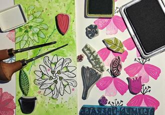 Maria Sibylla Merian oder Alexander von Humboldt waren leidenschaftliche Naturforschende, die ihre Beobachtungen in faszinierend detailreichen Pflanzendarstellungen festhielten. Im Workshop begeben wir uns auf ihre handwerklich-künstlerischen Spuren. Inspiriert von der frühlingshaften Vielfalt der Blüten und Blätter, werden Vorzeichnungen angefertigt und aus radiergummiartiger Masse individuelle Elemente der Natur geschnitzt. Mit diesen Stempeln können Pflanzenporträts auf Papier gedruckt werden – oder auch ein bunter Frühlingsstrauß. Eine kleine Aufbewahrungsschachtel ermöglicht die Sammlung der selbst erschaffenen Blütenschätze für zu Hause.