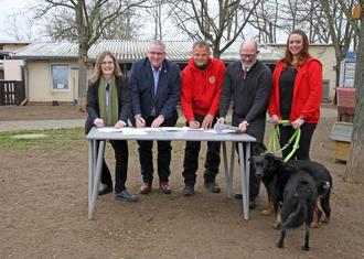 Der Vorsitzende des Tierhelfervereins Thomas Geyer freute sich: „Dass sich drei Kommunen gemeinsam entschieden haben, die Fundtierpauschale zu erhöhen, ist nicht selbstverständlich, aber nun können wir besser kalkulieren“. Dr. Christiane Döll, Beigeordnete der Stadt Ingelheim, Benno Neuhaus, Verbandsbürgermeister von Gau-Algesheim und Stephan Hinz, Bürgermeister von Budenheim trafen sich nun im Tierheim, um die Verträge zu unterzeichnen. Ab dem 1. März erhält das Tierheim nun von jeder Kommune 1,50 Euro pro Einwohner. Die Stadt Ingelheim zahlte bislang eine Fundtierpauschale von 0,60 Euro pro Einwohner. Gemeinden haben die Aufgabe, Fundtiere aufzunehmen und gemäß § 2 des Tierschutzgesetzes entsprechend im Tierheim oder einer Pflegestelle unterzubringen. Als Fundtiere gelten verirrte oder dem Halter dauerhaft entlaufene Haustiere.
