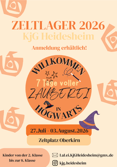 Begleite uns in unser magisches Zeltlager nach Oberkirn in den Sommerferien 2026. Anmeldungen findet ihr auf der Seite der Pfarrei St. Maria Magdalena Ingelheim bei Angebote für Jugendliche.