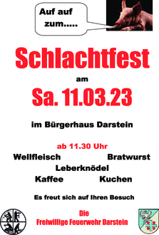 Darum geht herzliche Einladung zu unserem diesjährigen Schlachtfest am Samstag, den 11.03.2023 in Dorfgemeinschaftshaus in Darstein.