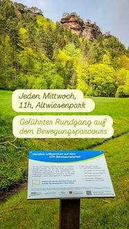 im Bewegungsparcours im Altwiesenpark, geführter Rundgang am kommenden Mittwoch, 11 Uhr (Treffpunkt: Parkplatz am Freibad)