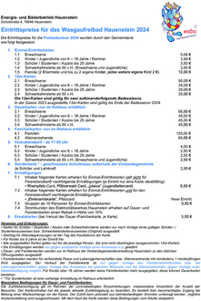Die Eintrittspreise wurden für die Saison 2024 festgelegt und wurden durch den Gemeinderat wie nachfolgend abgedruckt festgesetzt.