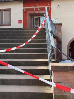 An der großen Treppen, die den Lorenz-Wingerter-Platz mit dem Rathausplatz verbindet, war das dort installierte Geländer schon stark in die Jahre gekommen. Die Farbe war teilweise abgeplatzt und das Geländer begann zu rosten. Eine Prüfung hat ergeben, dass die Standfestigkeit auch weiterhin gegeben ist und ein Neuanstrich ausreichen würde. Das Geländer wurde entrostet, neu gestrichen und sieht nun wieder ansehnlich aus.