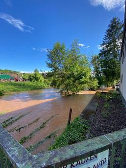Durch das Starkregenereignis stiegen die Pegel der Queich und der Wieslauter im Verlauf des Morgens stark an. Gegen Mittag entschied man sich dazu, die Pegel vor Ort regelmäßig zu kontrollieren. An den zahlreichen Brücken und Unterführungen hätte es zur Anstauung von Treibgut kommen können, wodurch der Abfluss des Wassers gestört worden wäre. Weiterhin wurden kleinere Einsätze im Zusammenhang mit dem Starkregen abgearbeitet. Bei weiter steigenden Pegeln entschied man sich am Abend dafür in den Straßen entlang der Wieslauter in Hinterweidenthal und der Queich in Wilgartswiesen Warndurchsagen zu machen, um die Bevölkerung wegen des weiter steigendenden Wassers vorzuwarnen. Für den Selbstschutz der Bevölkerung wurden in Wilgartswiesen gefüllte Sandsäcke ausgegeben. Diese wurden durch das THW in Hauenstein gefüllt. Nach dem Transport der Sandsäcke nach Wilgartswiesen wurde das MZF 3 durch den Landkreis angefordert, um in der Verbandsgemeinde Thaleischweiler-Wallhalben beim Transport von Material zu unterstützen. Hier konnte das MZF seine Geländefähigkeiten bei der Durchfahrt in den überfluteten Ortschaften voll ausspielen. Weiterhin war ein Kamerad über Nacht in der Technischen Einsatzleitung des Landkreises eingesetzt. Über die Technische Einsatzleitung des Landkreises wurden am Samstagmorgen Einheiten zur Unterstützung der Feuerwehren in der Verbandsgemeinde Zweibrücken-Land angefordert. Ein Kontingent mit 27 Einsatzkräften aus drei Feuerwehren unserer Verbandgemeinde machte sich gegen 8:00 Uhr auf in den Bereich Dellfeld, um dort mit Personal und Material zu unterstützen. Bis in die Abendstunden wurden dort an und in etlichen Gebäuden Pumparbeiten durchgeführt. Von der Leitstelle wurden wir dann kurz nach 17 Uhr nochmals zu einer überfluteten Fahrbahn auf der B10 alarmiert. Hier wurde die Fahrbahn durch den Einsatzleitwagen und die Feuerwehr Hinterweidenthal abgesichert und versucht, durch Reinigen eines Ablaufes den Wasserspiegel zu senken. Die Einsatzstelle wurde an den angeforderten LBM übergeben. Wieder einmal hat sich gezeigt, dass man für solche in immer kürzeren Abständen wiederkehrende Ereignisse vorbereitet sein muss. Es hätte auch unsere Verbandsgemeinde schlimmer treffen können. Ein großer Dank geht an die Einsatzkräfte unserer Feuerwehren egal in welcher Funktion und an welchem Ort – Ihr seid super.