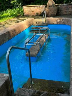Die Wassertretanlage im Altwiesenpark ist wieder in Betrieb. Nach der Glättung des Bodens und einem Neuanstrich des Beckens sowie einer Versiegelung der Sandsteineinfassungen, konnte sie wieder aktiviert werden. Sie soll auf jeden Fall bis zum Ende der Schwimmbadsaison benutzbar sein.