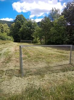 Unser Bolzplatz ist wieder bespielbar. Es hat ein bisschen gedauert, aber nun ist die Fläche wieder nutzbar. Umgefallene Bäume wurden entfernt oder zurück geschnitten und der Platz so gut wie möglich eingeebnet und gemäht. Wenn es auf Dauer nutzbar bleiben soll, ist angedacht, einen niedrigen Zaun zu stellen um die borstigen Rüsseltiere fern zu halten damit diese keine Gräben mehr ausheben können. Einen Ball müsst ihr vorerst noch mitbringen.