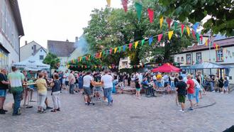 Rückblick: Seit vielen Jahren fand am vergangenen Freitag mal wieder eine Veranstaltung auf dem Lorenz-Wingerter-Platz statt. Bei tollem Wetter erfreuten 3 DJs die zahlreich erschienenen Zuhörer*innen mit Techno Beats im Sinne einer „After Work Party“ am Schuhmacherdenkmal. Die einheitliche Meinung aller Anwesenden lautete – super Idee, endlich mal wieder was los im Dorf, das auch Jüngere anspricht, solche Veranstaltungen sollten viel öfter stattfinden. Ein tolles Feeback für das Organisationsteam, die Äußerungen werden auf fruchtbaren Boden fallen.